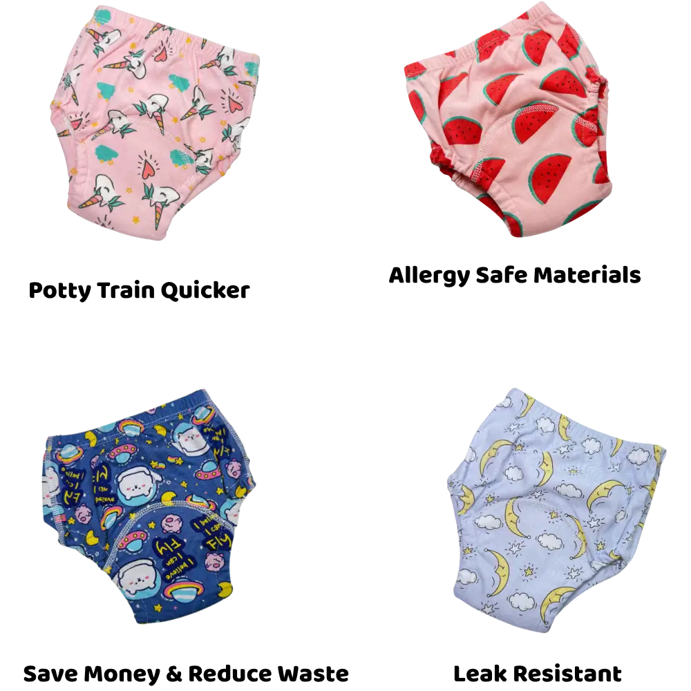We recommend starting with 5–10 pairs. During the first days of potty training, accidents are frequent, so having enough clean options makes the process less stressful.